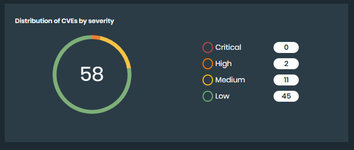 Distribution of CVEs by severity: This tile displays a graph of CVEs to show the total count of CVEs per rating, from Low to Critical.