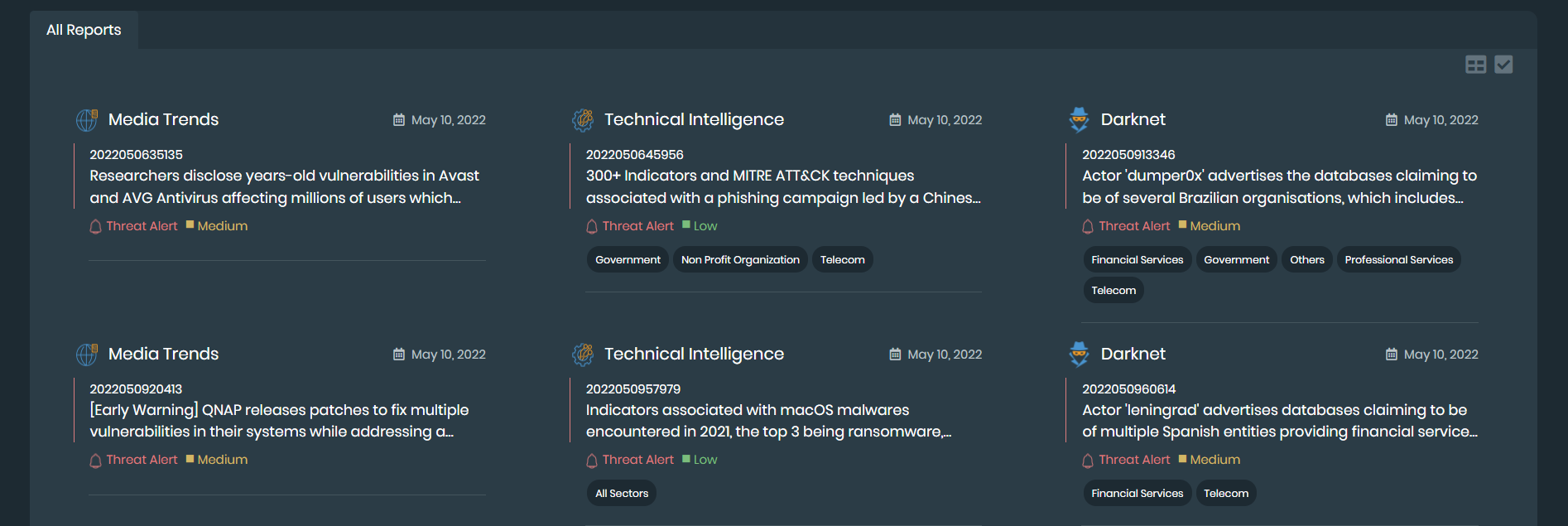 - Go to Adversary Centric Intelligence > Reports. All reports are displayed in the All Reports tab.