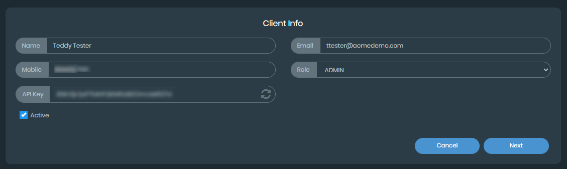 Click Edit. The Client Info page is displayed.