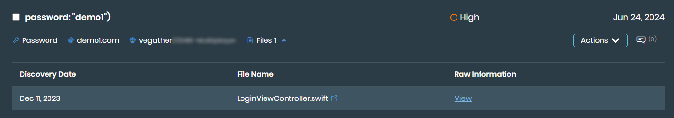 You can review information about exposed code attributes in the Brand Protection > Code Repo Exposure page. Information displayed about discovered exposed code includes: