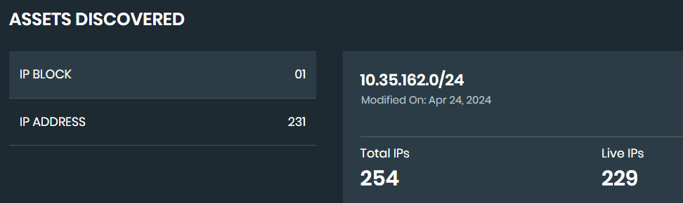 The number of IP blocks discovered. IP address The number of IP addresses that are linked to the IP blocks.