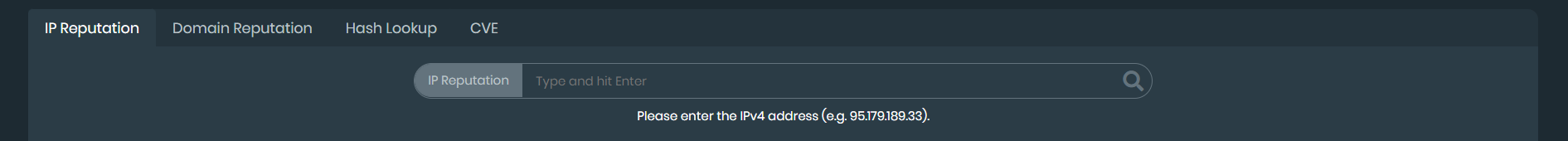You can use the IP Reputation search bar to search for IPv4 addresses.