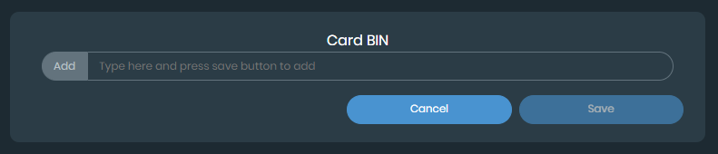 You can add new BINs in the Card BIN tab, as needed. BINs must be six to eight characters long.