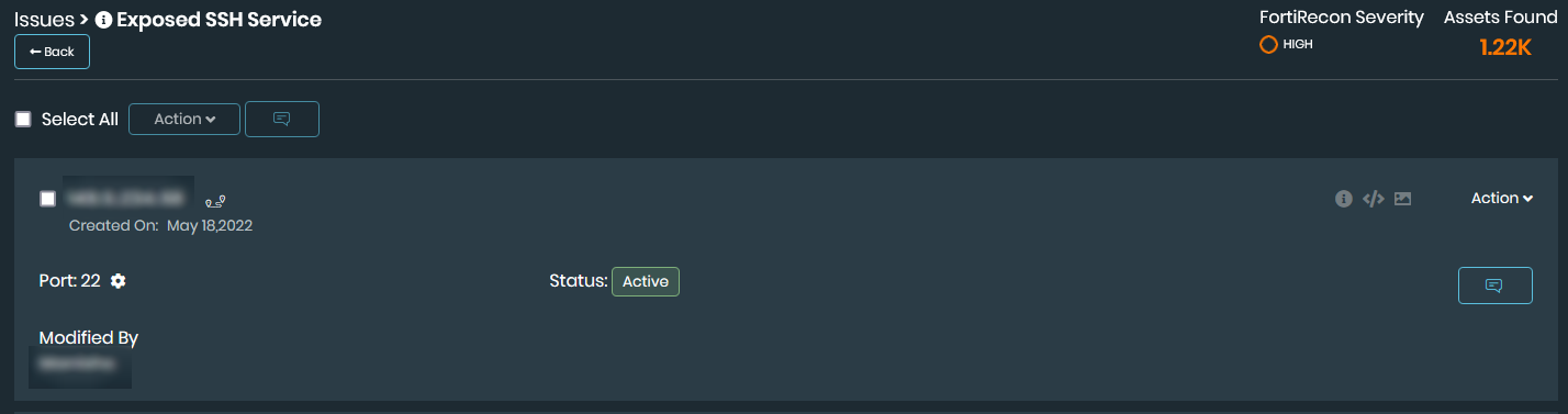 As you review and address security issues reported by FortiRecon, you can change the status of each issue to reflect your understanding and actions: