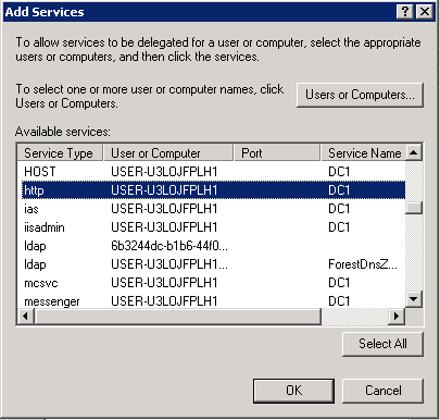 - Click OK, and then, in the Add Services dialog box, under in the list of available services, select the http item.