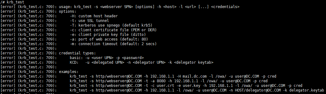 4. Test with FortiWeb backend tool krb_test and collect the output:
