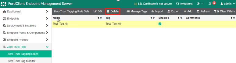 Sometimes you may find even if a tag is removed on FortiClient EMS, and the tag has been removed from the client displayed in