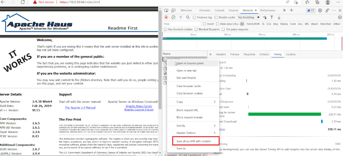 All major browsers including Chrome, Edge and Firefox support saving a visit as an HAR file. The saved HAR file records the timeline of loading each visited page resource, and can be imported to an HAR viewer such as Chrome extension HTTP Archive Viewer for further analysis.
