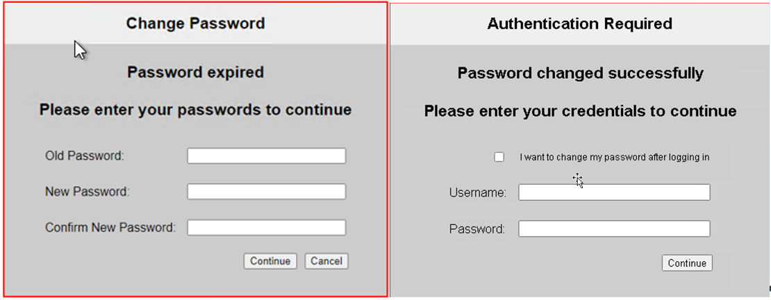 FortiWeb supports a user to change password (CPW) after a successful login. This function works in two scenarios: