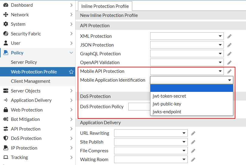 FortiWeb 8.0.0 enhances support for mobile token authentication by expanding verification methods, streamlining configuration, and improving token parsing logic. These enhancements improve usability and increase compatibility with modern mobile application architectures.