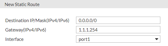 In this case, the source IPs in the outgoing package are either 2.2.2.1 or 1.1.1.1, so, instead of configuring a static route, you can alternatively configure another policy route specifying the Source address as 1.1.1.1/24, the Outgoing Interface as port1, and Gateway Address as 1.1.1.254. |