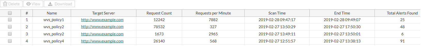 Go to Web Vulnerability Scan > Scan History, you can see the scan report list below.