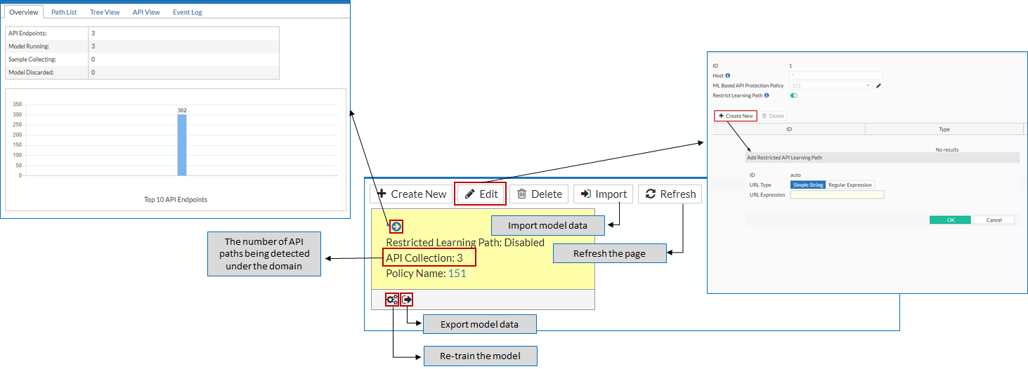Go to API Protection > ML Based API Protection > ML Based API Protection, click Export icon to export the schema model and the configuration data for this specific domain; To import the schema model and the configuration data stored in your local directory, click Import.