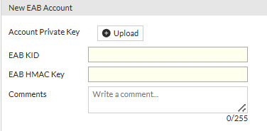 Immutable Settings: Once these EAB Account credentials are applied to an ACME certificate and the certificate moves beyond the initial status, EAB-related settings (such as the service, URL, and EAB selection) become read-only to maintain consistency.
