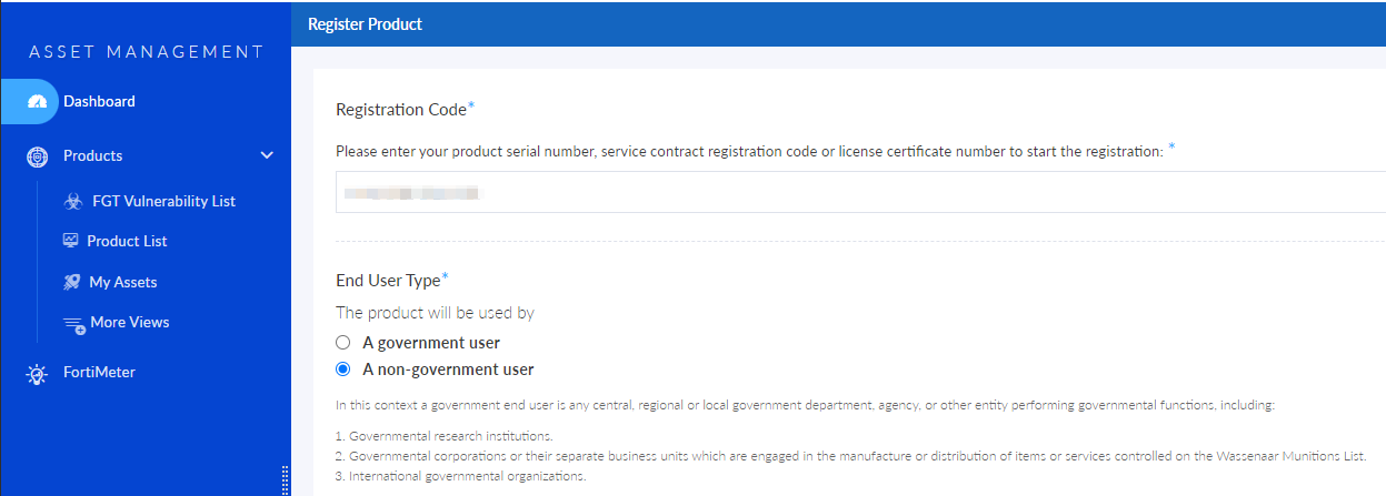 - Continue with the remaining instructions to register your Managed FortiGate Service license.