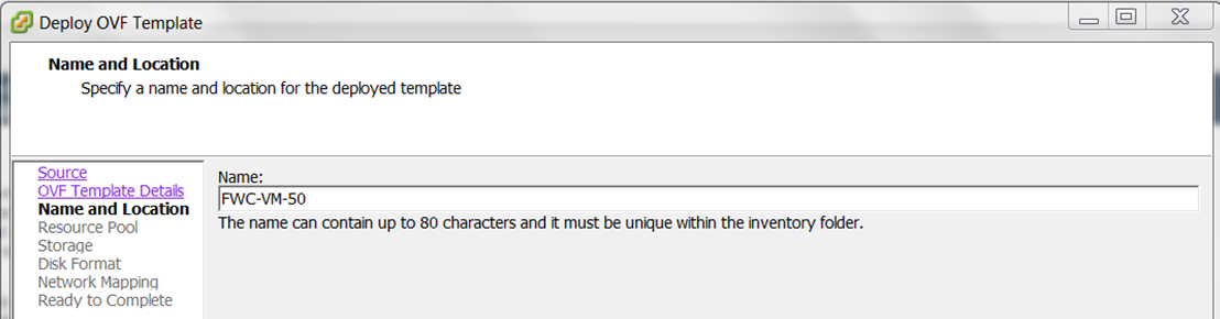 - Click Next and enter a Name for the Virtual Controller, for example, FWC-VM-50 is created as depicted in this image.