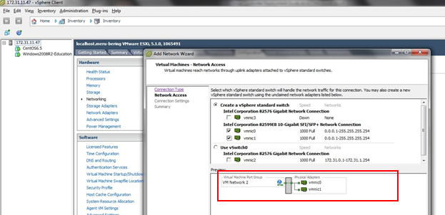 In this deployment, we will be using an added NIC card with 2 Gig Ethernet ports as shown in the Network Adapters wizard.