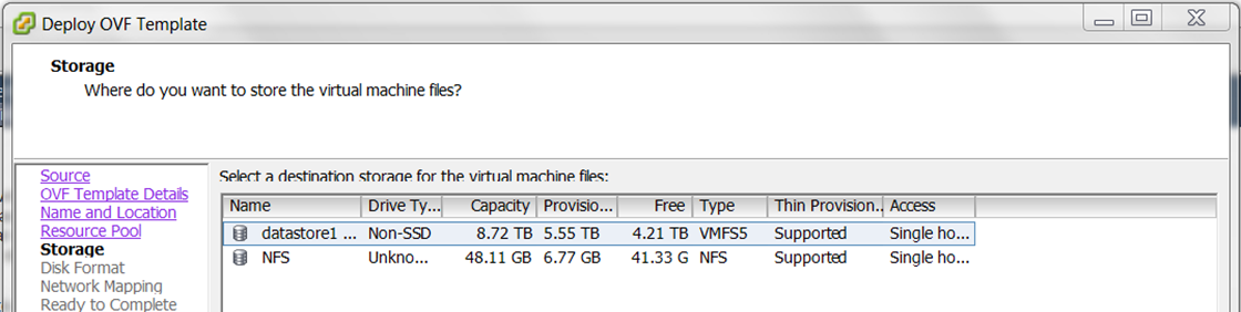 Each vNIC has to be a part of a different Vswitch connected to different physical ports. Now that the structure is ready, start installing the OVA template into the VMware host.
