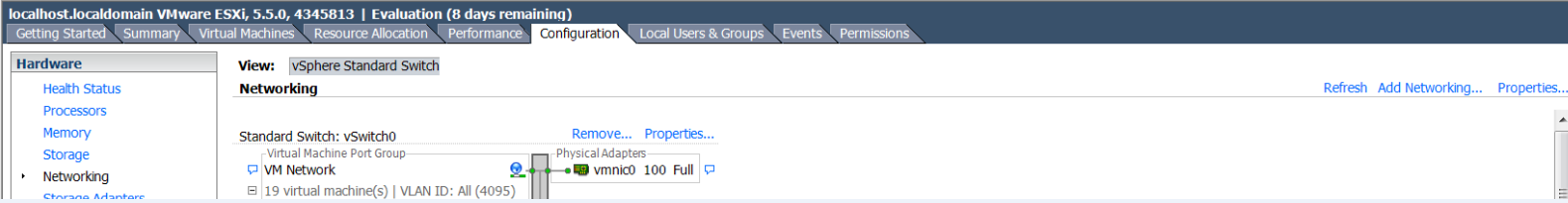 As you can see, there are existing 2 VM running on the host, using the same vSwitch0 and same Virtual Machine port Group. The vSwitch is also used by the vKernel Port that is responsible for the ESXi management.