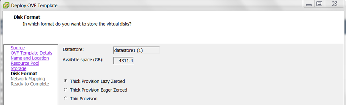 Use the default Disk Format - Thick Provisioning Lazy Zereod.